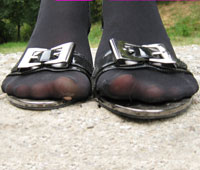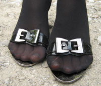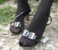 Ana, a beautiful model from the Eastern countries, in this photo shooting realized in a park on the Bologna hills, wears coulotte, black stockings and tights pantyhose, babydolls and panties in pink transparent lace, Beautiful buttocks ass and close-ups in upskirt style showing the intimate parts from bottom to top. Feet plants beautiful and sinuous. Close-up feet in pantyhose wear sandals and black decollette. Beautiful hands with red nail polish. |